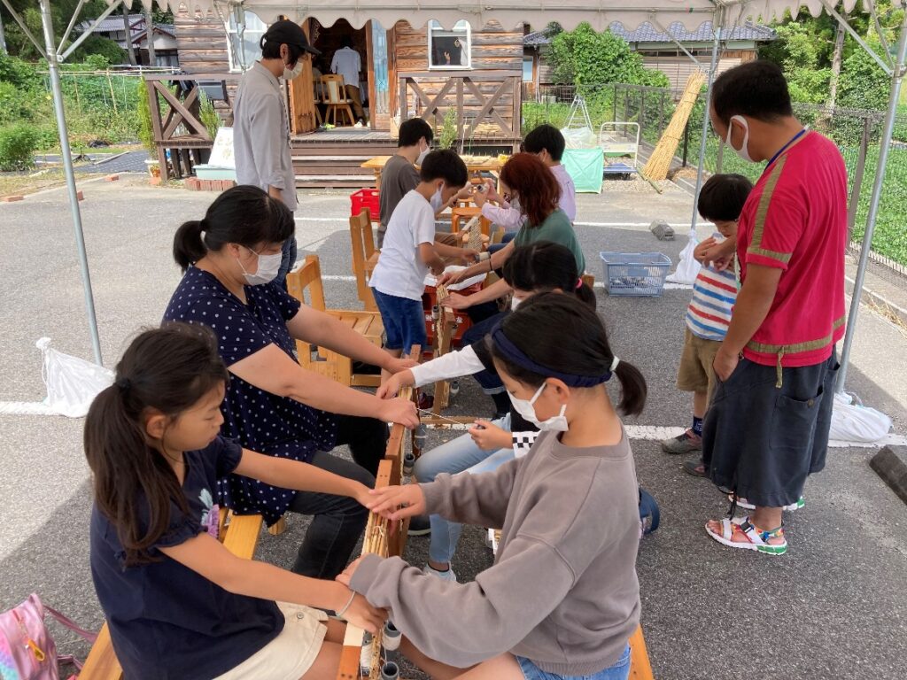 葭簀編み 2022年9月25日 最終更新日時 : 2024年3月21日 maruyoshiweb 定員を大きく超える申し込みがあり、2日間で計46名が参加されました。 このワークショップでみんなが作った葭簀は、翌月に開催するヨシフェスで展示します。少し編み始めればすぐにコツを掴んでいただけたようで、すごくたくさんの葭簀が出来上がりました。